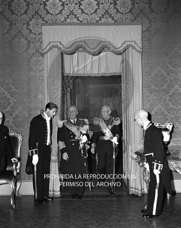 Visita de Franco a Portugal. Franco se entrevista con el Mariscal Carmoina en el Palacio de Belem. 22/10/1949