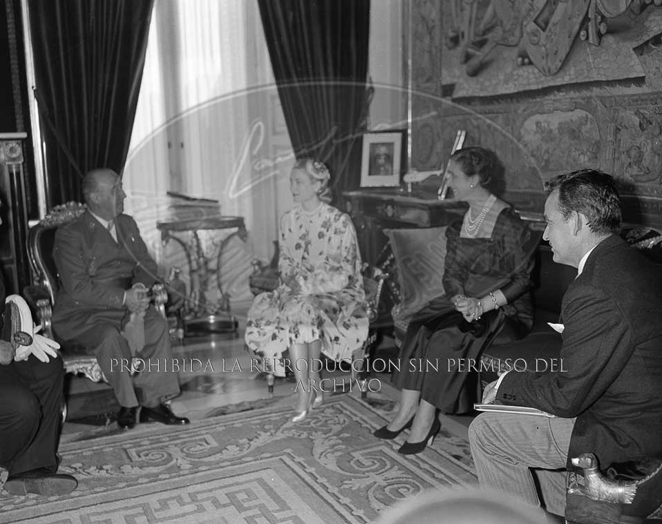 Los Principes de Mónaco, Rainiero y Grace, son recibidos por el Jefe del Estado Francisco Franco en el Palacio de El Pardo