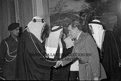 El Rey Saud de Arabia Saudí ofrece una recepción en el Palacio de La Moncloa de Madrid.