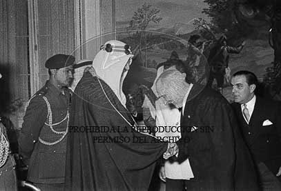 El Rey Saud de Arabia Saudí ofrece una recepción en el Palacio de La Moncloa de Madrid.