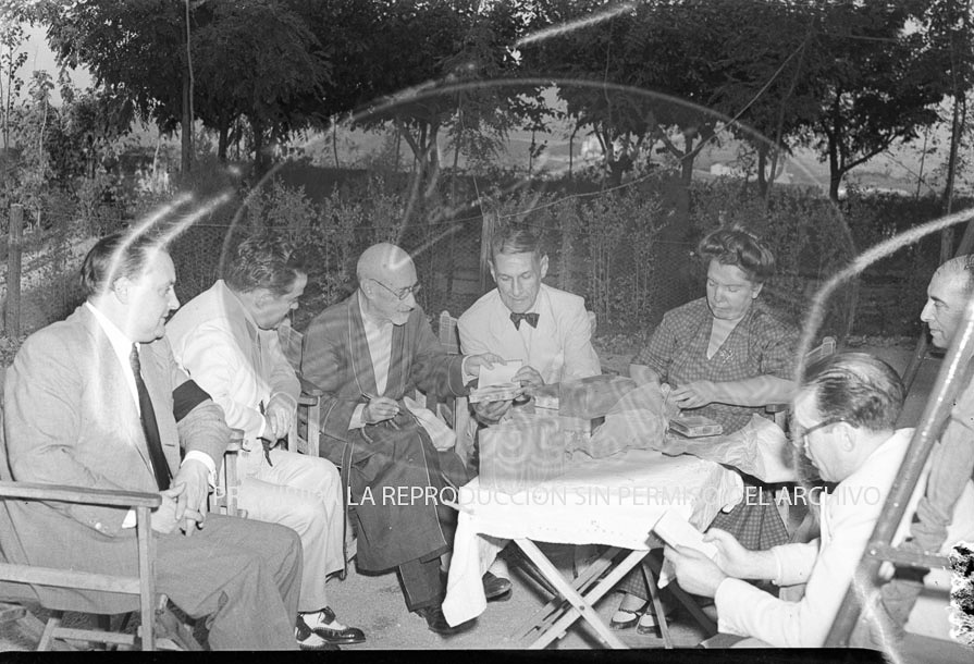 Jacinto Benavente en su casa, con el embajador de Filipinas Sr. Nieto y periodistas.