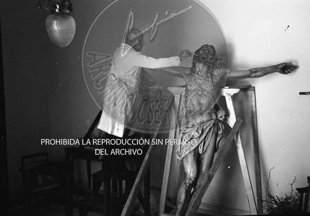 El escultor Zuloaga trabajando en su estudio en la terminación del Cristo del Valle de los Caidos, y mostrandole su obra al Jefe del Estado Francisco Franco en el Palacio de El Pardo