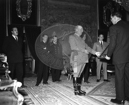 Franco recibe a una comisión de mineros asturianos, presididos por el Ministro de Trabajo , Sr. Girón de Velasco.
