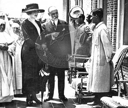 La Reina Victoria Eugenia con el Doctor Codina en la inauguración de las nuevas dependencias del Sanatorio de Valdelatas.