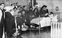 La Reina Victoria Eugenia repartiendo juguetes a los niños del hospital del Niño Jesús, acompañada por el Doctor Aquellada, director de sala y de personal médico del hospital. Diciembre 1920