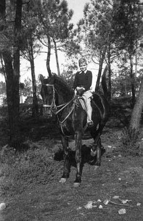 El Infante D. Juan Carlos y el Infante D. Alfonso montando a caballo en Estoril.