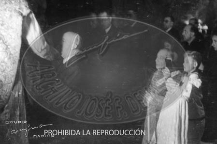 Celebración de la Primera Comunión del Príncipe D. Juan Carlos. Acto religioso y retratos.