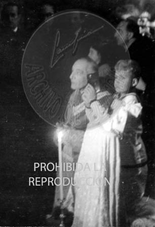 Celebración de la Primera Comunión del Príncipe D. Juan Carlos. Acto religioso y retratos.