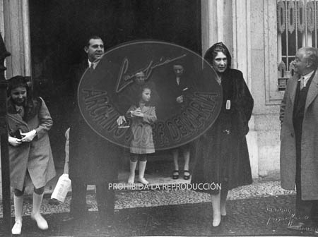 Celebración de la Primera Comunión del Príncipe D. Juan Carlos. Acto religioso y retratos.