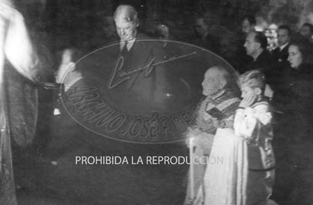Celebración de la Primera Comunión del Príncipe D. Juan Carlos. Acto religioso y retratos.