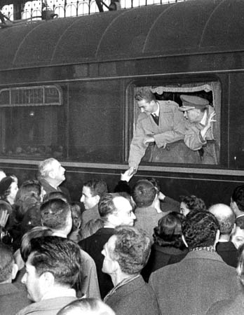 Imágenes de D. Juan Carlos en la Academia Militar de Zaragoza. D. Juan Carlos con un compañero en la Academia General de Zaragoza. Positivo dedicado por El Príncipe D. Juan Carlos a José Demaría Campúa.