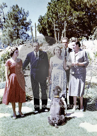 Los Condes de Barcelona con el Infante Don Juan Carlos y las Infantas Dª Pilar y Dª Margarita. D. Juan Carlos Juega con su perro al lado de sus hermanas
