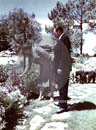Los Condes de Barcelona con el Infante Don Juan Carlos y las Infantas Dª Pilar y Dª Margarita. D. Juan Carlos Juega con su perro al lado de sus hermanas