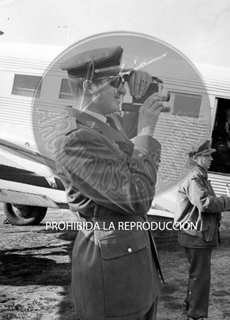 D. Juan Carlos de uniforme de Teniente de aviación filmando con su cámara súper 8 al lado de un Junker JU-52