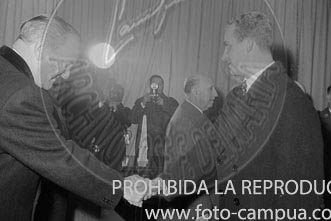 Franco, con los Príncipes de España reciben y despiden en Barajas al Rey de Grecia. Les acompañan el Ministro de Asuntos Exteriores Sr. Castiella, del Ejercito Gral. Martin Alonso, de la Gobernación Gral. Camilo Alonso Vega y del Aire Gral. Lacalle, así como el Infante D. Alfonso de Orleans.