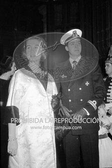 Boda de la Princesa Mª Teresa de Baviera (Tessa de Baviera) con D. Alfonso Márquez y Patiño, en San Francisco el Grande. Príncipes de España de testigos. Duquesa de Alba, Alfonso de Borbón, Gutiérrez Mellado de Coronel entre los invitados, Carrero Blanco.