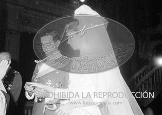 Boda de la Princesa Mª Teresa de Baviera (Tessa de Baviera) con D. Alfonso Márquez y Patiño, en San Francisco el Grande. Príncipes de España de testigos. Duquesa de Alba, Alfonso de Borbón, Gutiérrez Mellado de Coronel entre los invitados, Carrero Blanco.