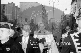 Boda de la Princesa Mª Teresa de Baviera (Tessa de Baviera) con D. Alfonso Márquez y Patiño, en San Francisco el Grande. Príncipes de España de testigos. Duquesa de Alba, Alfonso de Borbón, Gutiérrez Mellado de Coronel entre los invitados, Carrero Blanco.