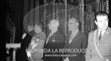Boda de la Princesa Mª Teresa de Baviera (Tessa de Baviera) con D. Alfonso Márquez y Patiño, en San Francisco el Grande. Príncipes de España de testigos. Duquesa de Alba, Alfonso de Borbón, Gutiérrez Mellado de Coronel entre los invitados, Carrero Blanco.