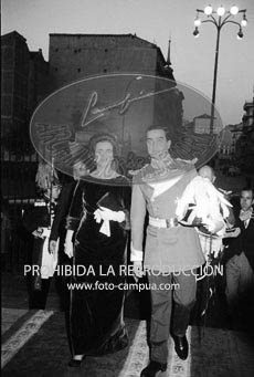 Boda de la Princesa Mª Teresa de Baviera (Tessa de Baviera) con D. Alfonso Márquez y Patiño, en San Francisco el Grande. Príncipes de España de testigos. Duquesa de Alba, Alfonso de Borbón, Gutiérrez Mellado de Coronel entre los invitados, Carrero Blanco.
