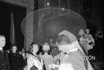 Boda de la Princesa Mª Teresa de Baviera (Tessa de Baviera) con D. Alfonso Márquez y Patiño, en San Francisco el Grande. Príncipes de España de testigos. Duquesa de Alba, Alfonso de Borbón, Gutiérrez Mellado de Coronel entre los invitados, Carrero Blanco.