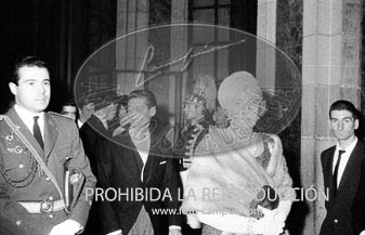 Boda de la Princesa Mª Teresa de Baviera (Tessa de Baviera) con D. Alfonso Márquez y Patiño, en San Francisco el Grande. Príncipes de España de testigos. Duquesa de Alba, Alfonso de Borbón, Gutiérrez Mellado de Coronel entre los invitados, Carrero Blanco.