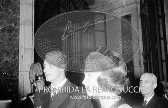 Boda de la Princesa Mª Teresa de Baviera (Tessa de Baviera) con D. Alfonso Márquez y Patiño, en San Francisco el Grande. Príncipes de España de testigos. Duquesa de Alba, Alfonso de Borbón, Gutiérrez Mellado de Coronel entre los invitados, Carrero Blanco.