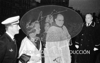 Boda de la Princesa Mª Teresa de Baviera (Tessa de Baviera) con D. Alfonso Márquez y Patiño, en San Francisco el Grande. Príncipes de España de testigos. Duquesa de Alba, Alfonso de Borbón, Gutiérrez Mellado de Coronel entre los invitados, Carrero Blanco.