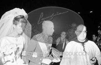 Boda de la Princesa Mª Teresa de Baviera (Tessa de Baviera) con D. Alfonso Márquez y Patiño, en San Francisco el Grande. Príncipes de España de testigos. Duquesa de Alba, Alfonso de Borbón, Gutiérrez Mellado de Coronel entre los invitados, Carrero Blanco.