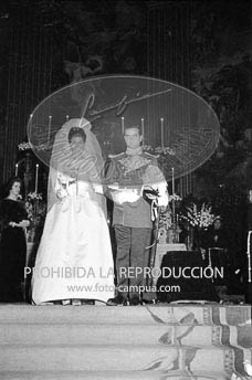 Boda de la Princesa Mª Teresa de Baviera (Tessa de Baviera) con D. Alfonso Márquez y Patiño, en San Francisco el Grande. Príncipes de España de testigos. Duquesa de Alba, Alfonso de Borbón, Gutiérrez Mellado de Coronel entre los invitados, Carrero Blanco.