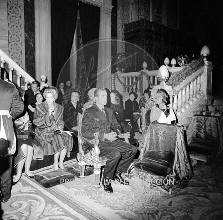 Boda de la Princesa Mª Teresa de Baviera (Tessa de Baviera) con D. Alfonso Márquez y Patiño, en San Francisco el Grande. Príncipes de España de testigos. Duquesa de Alba, Alfonso de Borbón, Gutiérrez Mellado de Coronel entre los invitados, Carrero Blanco.