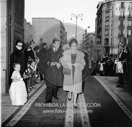 Boda de la Princesa Mª Teresa de Baviera (Tessa de Baviera) con D. Alfonso Márquez y Patiño, en San Francisco el Grande. Príncipes de España de testigos. Duquesa de Alba, Alfonso de Borbón, Gutiérrez Mellado de Coronel entre los invitados, Carrero Blanco.