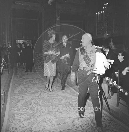 Boda de la Princesa Mª Teresa de Baviera (Tessa de Baviera) con D. Alfonso Márquez y Patiño, en San Francisco el Grande. Príncipes de España de testigos. Duquesa de Alba, Alfonso de Borbón, Gutiérrez Mellado de Coronel entre los invitados, Carrero Blanco.