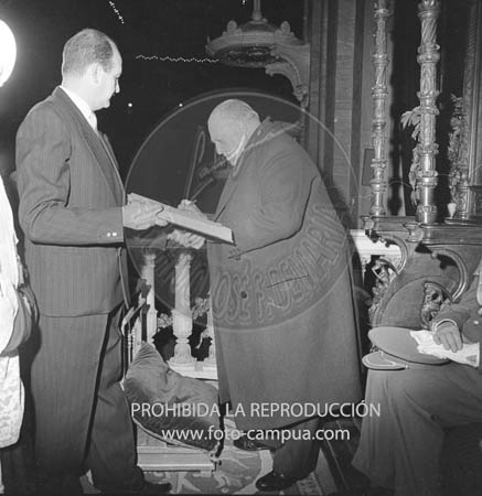 Boda de la Princesa Mª Teresa de Baviera (Tessa de Baviera) con D. Alfonso Márquez y Patiño, en San Francisco el Grande. Príncipes de España de testigos. Duquesa de Alba, Alfonso de Borbón, Gutiérrez Mellado de Coronel entre los invitados, Carrero Blanco.