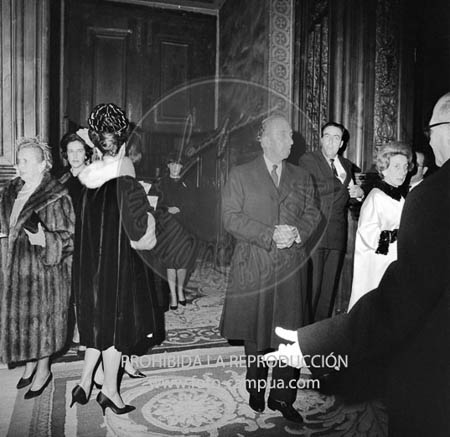 Boda de la Princesa Mª Teresa de Baviera (Tessa de Baviera) con D. Alfonso Márquez y Patiño, en San Francisco el Grande. Príncipes de España de testigos. Duquesa de Alba, Alfonso de Borbón, Gutiérrez Mellado de Coronel entre los invitados, Carrero Blanco.
