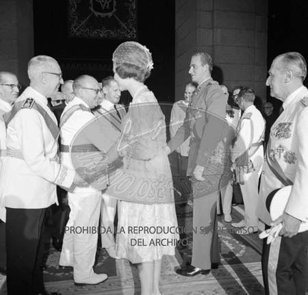 Los Príncipes de España en los actos del IV Centenario de El Escorial, presididos por El Caudillo.