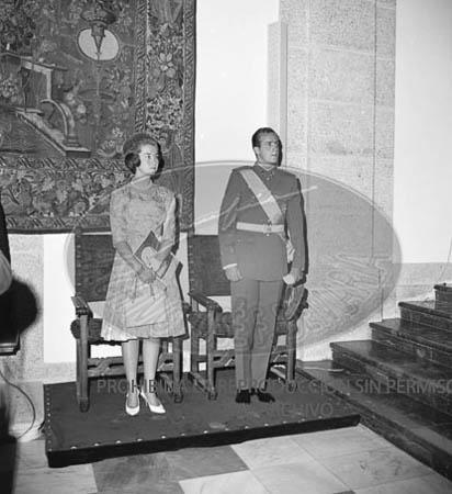 Los Príncipes de España en los actos del IV Centenario de El Escorial, presididos por El Caudillo.