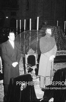 El Príncipe D. Juan Carlos y D. Alfonso de Borbón en los funerales en El Escorial por el alma de D. Alfonso XIII.