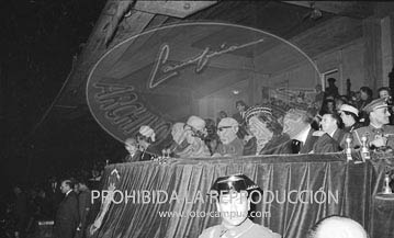 El Caudillo y los Príncipes de España presidiendo la VIII demostración sindical en el Estadio Santiago Bernabéu.