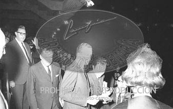 El Caudillo y los Príncipes de España presidiendo la VIII demostración sindical en el Estadio Santiago Bernabéu.