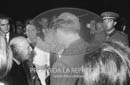 Los Príncipes de España D. Juan Carlos y Dª Sofía, con el Caudillo y su esposa, reciben al Rey Constantino de Grecia en Barajas. D. Juan Carlos besando la mano a Dª Carmen.