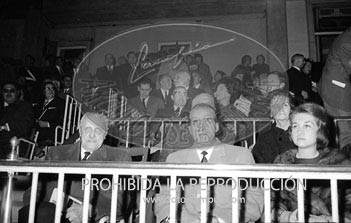 Los Príncipes de España asisten a la demostración sindical en el estadio Santiago Bernabéu, en la tribuna el Rey Simeón de Bulgaria.