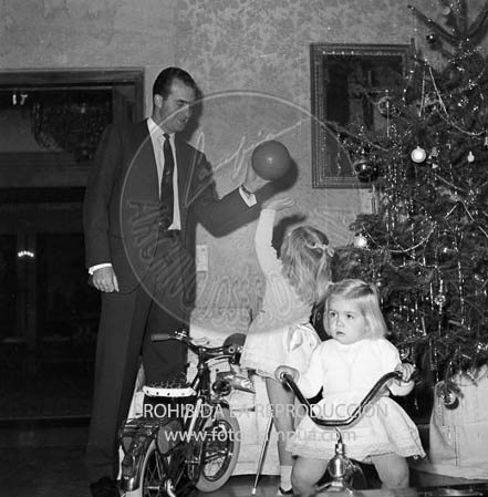 En el Palacio de La Zarzuela, los Príncipes de España D. Juan Carlos y Dª Sofía, pasan las fiestas navideñas en compañía de sus hijas.