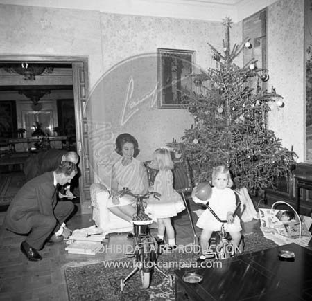 En el Palacio de La Zarzuela, los Príncipes de España D. Juan Carlos y Dª Sofía, pasan las fiestas navideñas en compañía de sus hijas.