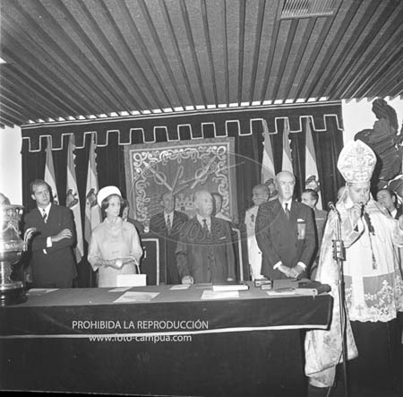 Franco, acompañado por Dª Carmen y el Príncipe de España asisten a la inauguración del Real Automóvil Club.