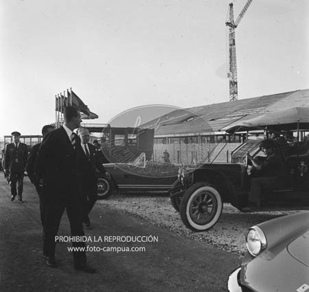 Franco, acompañado por Dª Carmen y el Príncipe de España asisten a la inauguración del Real Automóvil Club.