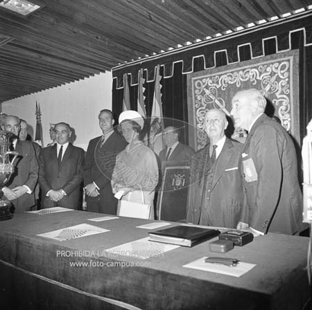 Franco, acompañado por Dª Carmen y el Príncipe de España asisten a la inauguración del Real Automóvil Club.
