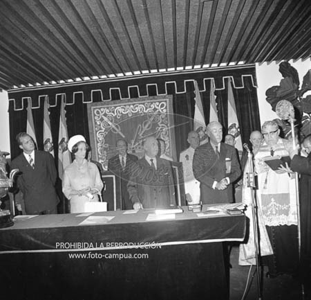 Franco, acompañado por Dª Carmen y el Príncipe de España asisten a la inauguración del Real Automóvil Club.