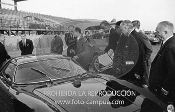 Franco, acompañado por Dª Carmen y el Príncipe de España asisten a la inauguración del Real Automóvil Club.