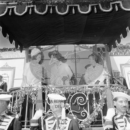 El Caudillo y los Príncipes de España en al Desfile de la Victoria. D. Alfonso de Borbón y el Rey Simeón de Bulgaria en la tribuna.